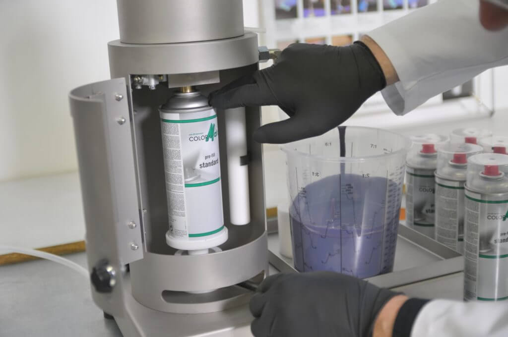 В наших магазинах используются специальные профессиональные установки для автономной заправки эмали в аэрозоли Color Matic. Такая установка применима для любых типов эмалей, независимо от их вязкости.